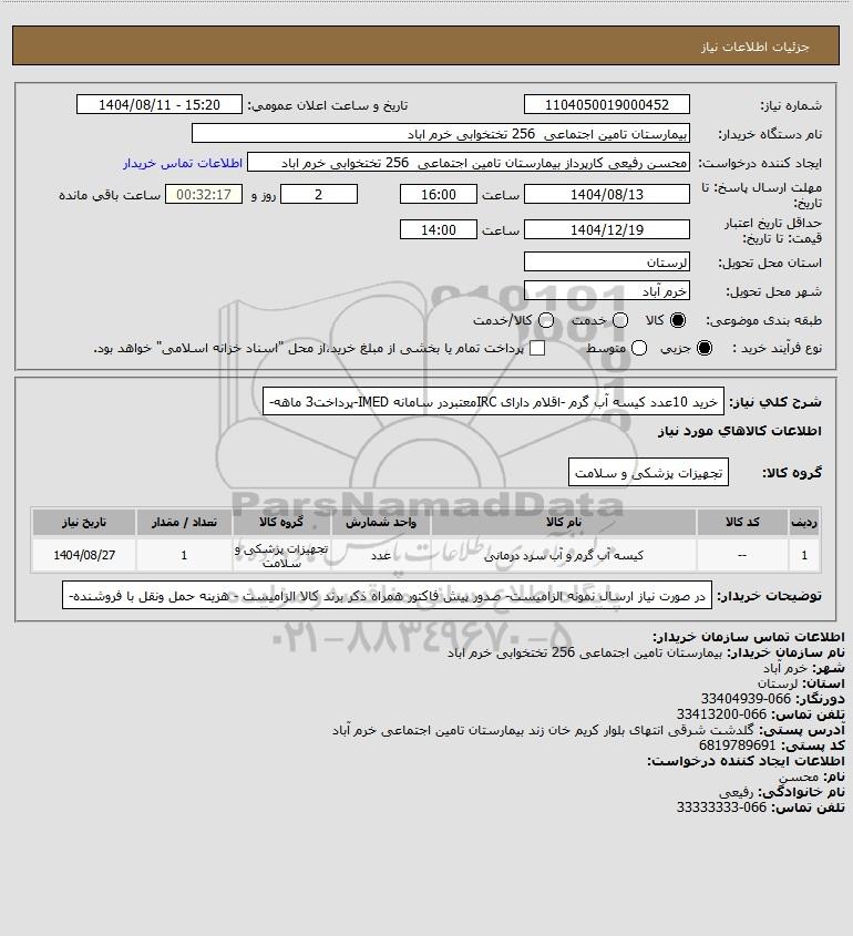 تلفن:5- 88349670 (021) فکس: 88349673 (021) Website: www.ParsNamadData.com E-mail: Info@ParsNamadData.com استعلام خرید 10عدد کیسه آب گرم -اقلام دارای IRCمعتبردر سامانه IMED-پرداخت3 ماهه-