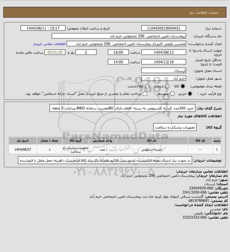 تلفن:5- 88349670 (021) فکس: 88349673 (021) Website: www.ParsNamadData.com E-mail: Info@ParsNamadData.com استعلام خرید 300عدد کیسه کلستومی ته بسته -اقلام دارای IRCمعتبردر سامانه IMED-پرداخت 5 ماهه-