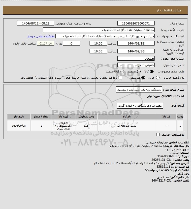 تلفن:5- 88349670 (021) فکس: 88349673 (021) Website: www.ParsNamadData.com E-mail: Info@ParsNamadData.com استعلام دستگاه لوله یاب طبق شرح پیوست