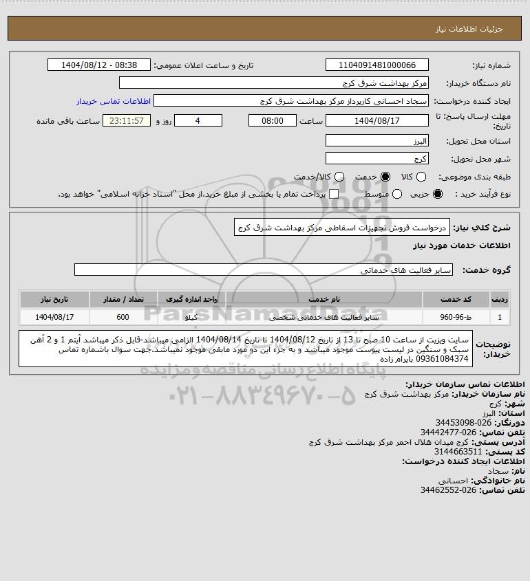 تلفن:5- 88349670 (021) فکس: 88349673 (021) Website: www.ParsNamadData.com E-mail: Info@ParsNamadData.com استعلام درخواست فروش تجهیزات اسقاطی مرکز بهداشت شرق کرج
