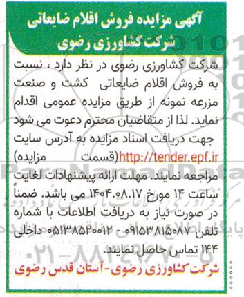 تلفن:5- 88349670 (021) فکس: 88349673 (021) Website: www.ParsNamadData.com E-mail: Info@ParsNamadData.com مزایده فروش اقلام ضایعاتی