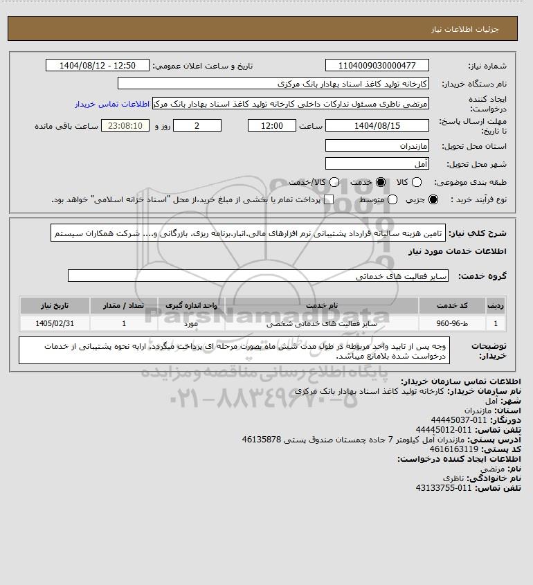تلفن:5- 88349670 (021) فکس: 88349673 (021) Website: www.ParsNamadData.com E-mail: Info@ParsNamadData.com استعلام تامین هزینه سالیانه قرارداد پشتیبانی نرم افزارهای مالی.انبار.برنامه ریزی. بازرگانی و.... شرکت همکاران سیستم