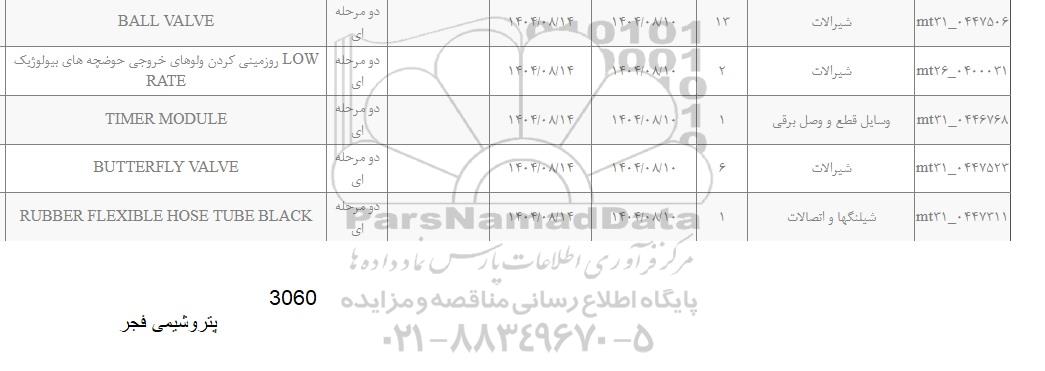 تلفن:5- 88349670 (021) فکس: 88349673 (021) Website: www.ParsNamadData.com E-mail: Info@ParsNamadData.com استعلام BALL VALVE ...