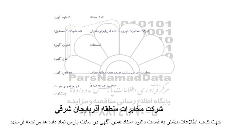 تلفن:5- 88349670 (021) فکس: 88349673 (021) Website: www.ParsNamadData.com E-mail: Info@ParsNamadData.com استعلام عملیات اجرایی سایت جدید ...