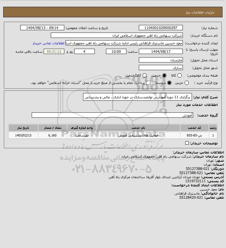 تلفن:5- 88349670 (021) فکس: 88349673 (021) Website: www.ParsNamadData.com E-mail: Info@ParsNamadData.com استعلام برگزاری 11 دوره آموزشی توانمندسازی در حوزه اداری مالی و پشتیبانی