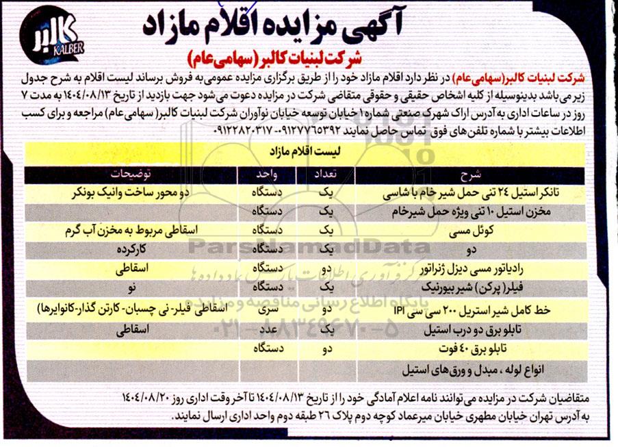 تلفن:5- 88349670 (021) فکس: 88349673 (021) Website: www.ParsNamadData.com E-mail: Info@ParsNamadData.com مزایده اقلام مازاد