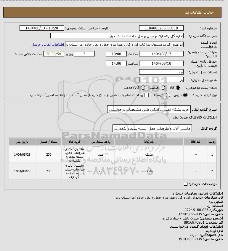 تلفن:5- 88349670 (021) فکس: 88349673 (021) Website: www.ParsNamadData.com E-mail: Info@ParsNamadData.com استعلام خرید بشکه ایمنی ترافیکی طبق مشخصات درخواستی