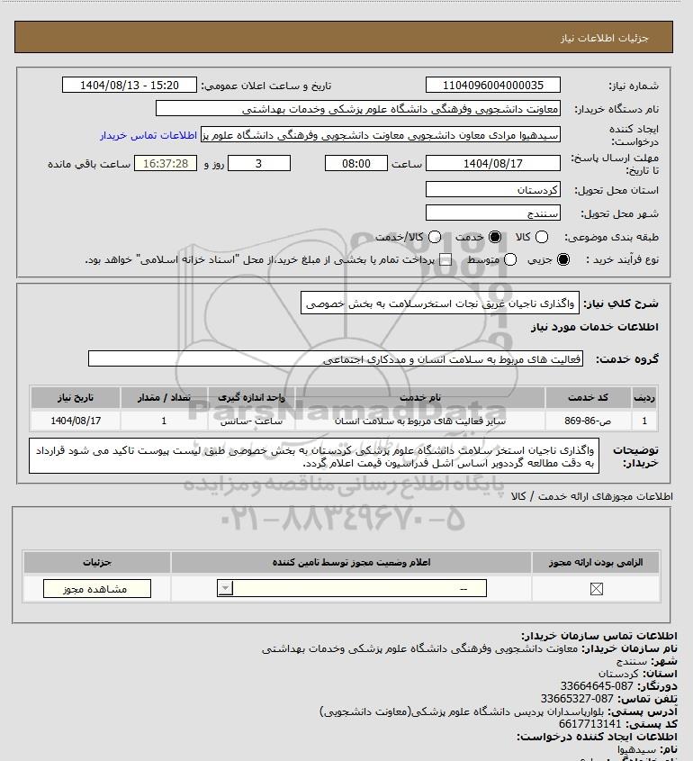 تلفن:5- 88349670 (021) فکس: 88349673 (021) Website: www.ParsNamadData.com E-mail: Info@ParsNamadData.com استعلام واگذاری ناجیان غریق نجات استخرسلامت به بخش خصوصی