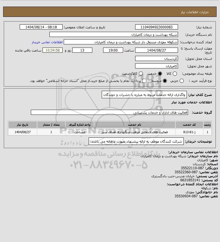 تلفن:5- 88349670 (021) فکس: 88349673 (021) Website: www.ParsNamadData.com E-mail: Info@ParsNamadData.com استعلام واگذاری ارائه خدمات مربوط به مبارزه با حشرات و جوندگان