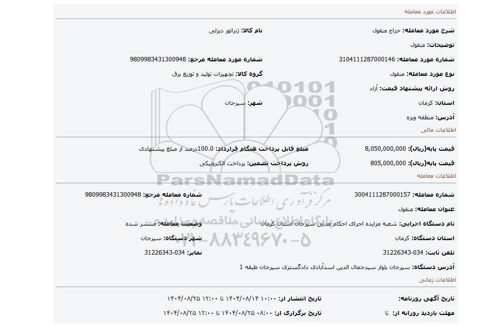 آگهی گزار شعبه مزایده اجرای احکام مدنی سیرجان استان کرمان