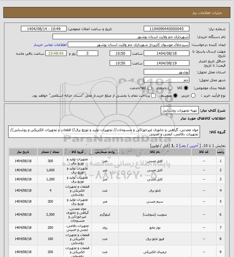 تلفن:5- 88349670 (021) فکس: 88349673 (021) Website: www.ParsNamadData.com E-mail: Info@ParsNamadData.com استعلام تهیه تجهیزات روشنایی