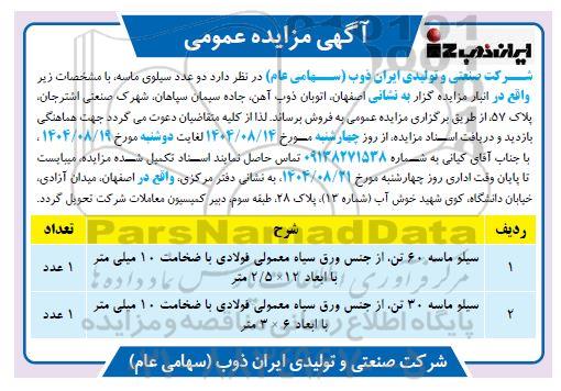 تلفن:5- 88349670 (021) فکس: 88349673 (021) Website: www.ParsNamadData.com E-mail: Info@ParsNamadData.com مزایده فروش سیلو ماسه