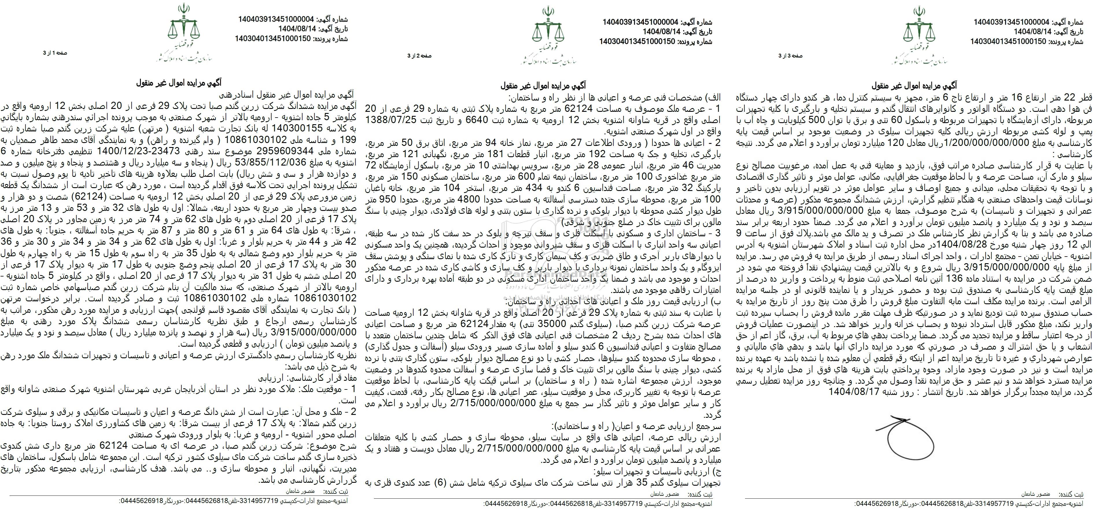تلفن:5- 88349670 (021) فکس: 88349673 (021) Website: www.ParsNamadData.com E-mail: Info@ParsNamadData.com آگهی مزایده ششدانگ شرکت زرین گندم صبا پلاک 29 فرعی....