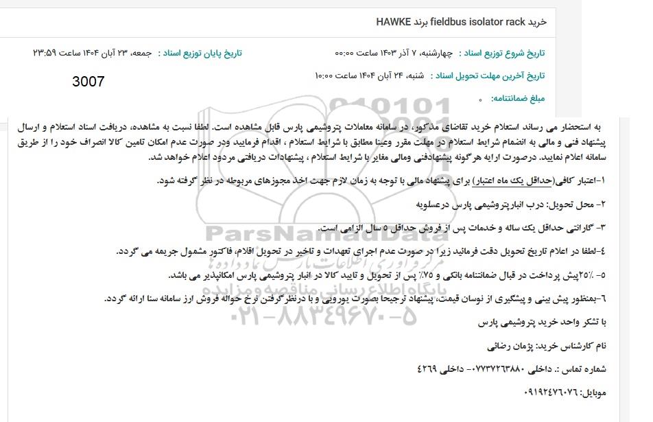 | عنوان آگهی: استعلام fieldbus isolator rack برند hawke |