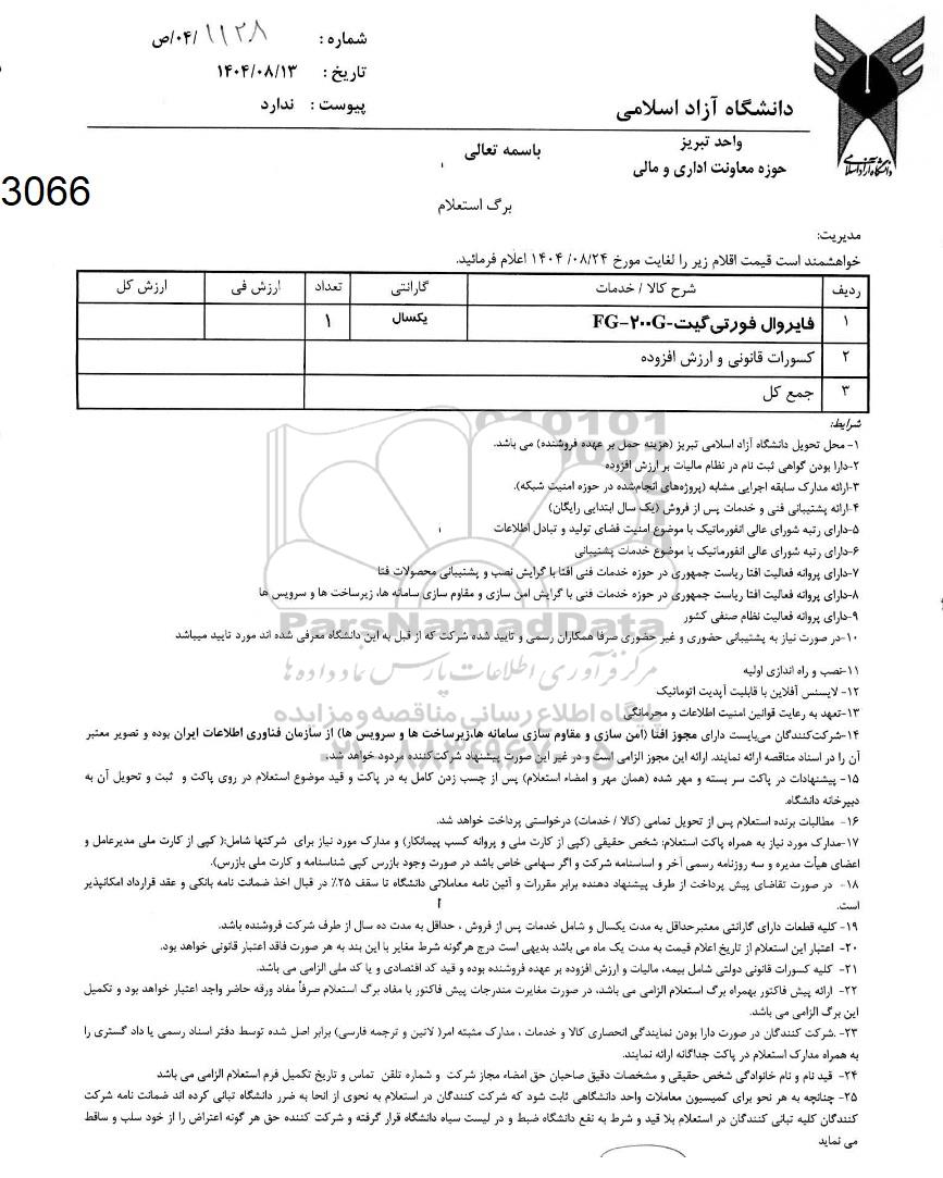 | عنوان آگهی: استعلام فایروال فورتی گیت - 200G -FG |