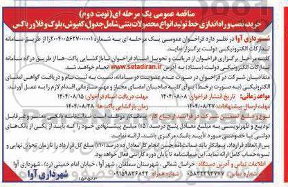 مناقصه خرید ، نصب و راه اندازی خط تولید انواع محصولات بتنی ...نوبت دوم