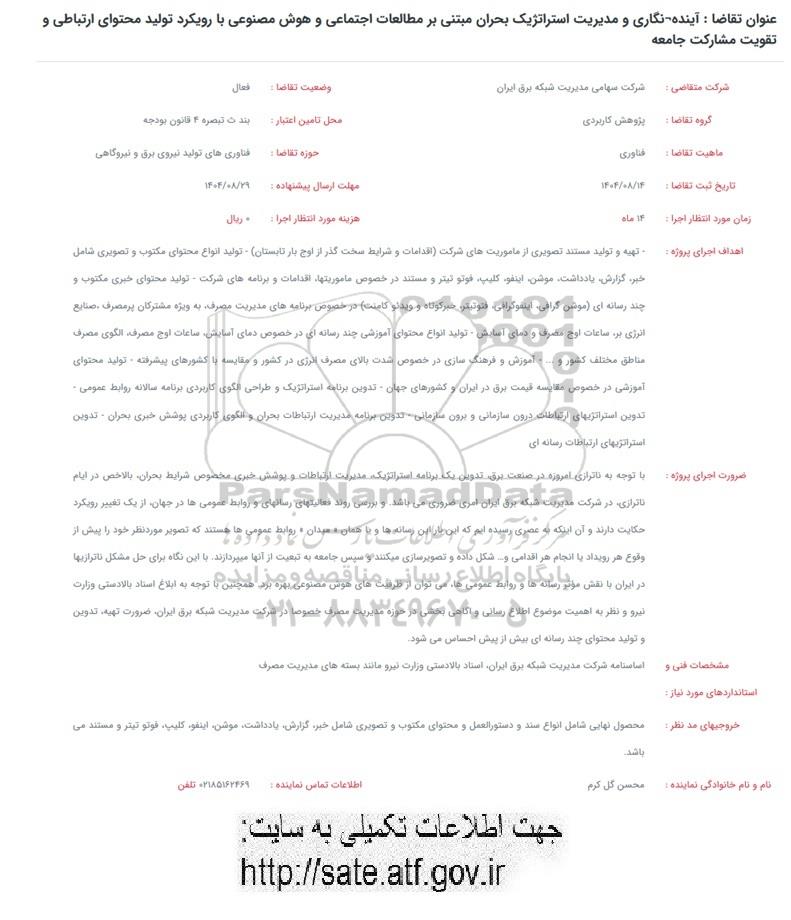 شرکت متقاضی: شرکت سهامی مدیریت شبکه برق ایران