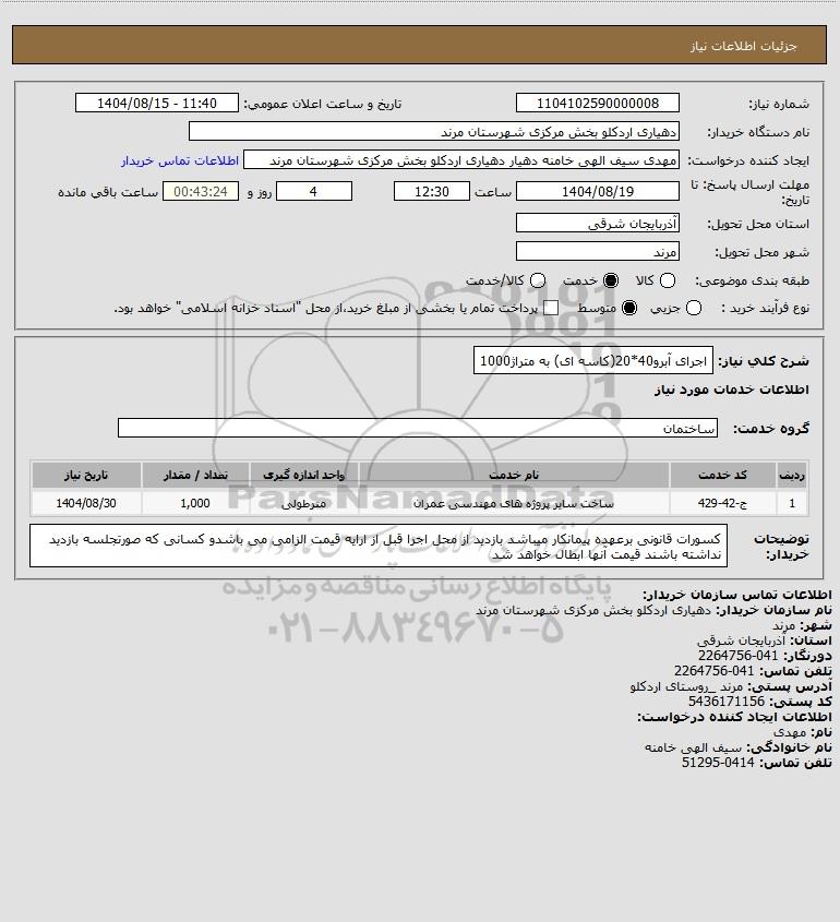 تلفن:5- 88349670 (021) فکس: 88349673 (021) Website: www.ParsNamadData.com E-mail: Info@ParsNamadData.com استعلام اجرای آبرو40*20(کاسه ای) به متراژ1000