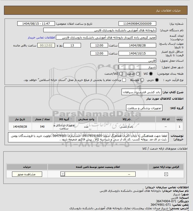تلفن:5- 88349670 (021) فکس: 88349673 (021) Website: www.ParsNamadData.com E-mail: Info@ParsNamadData.com استعلام باند کشی فشار زیاد سپاهان