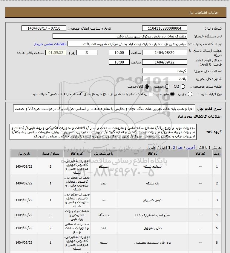 تلفن:5- 88349670 (021) فکس: 88349673 (021) Website: www.ParsNamadData.com E-mail: Info@ParsNamadData.com استعلام اجرا و نصب پایه های دوربین های پلاک خوان و نظارتی با تمام متعلقات بر اساس جزئیات برگ درخواست خریدکالا و خدمت