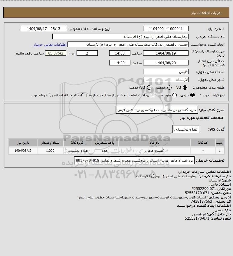 تلفن:5- 88349670 (021) فکس: 88349673 (021) Website: www.ParsNamadData.com E-mail: Info@ParsNamadData.com استعلام خرید کنسرو تن ماهی ناخدا وکنسرو تن ماهی فرس