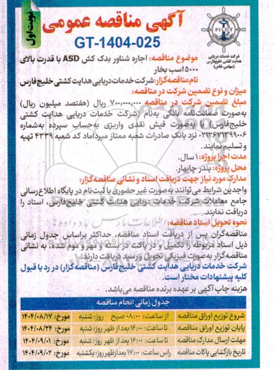 آگهی گزار شرکت خدمات دریایی هدایت کشتی خلیج فارس