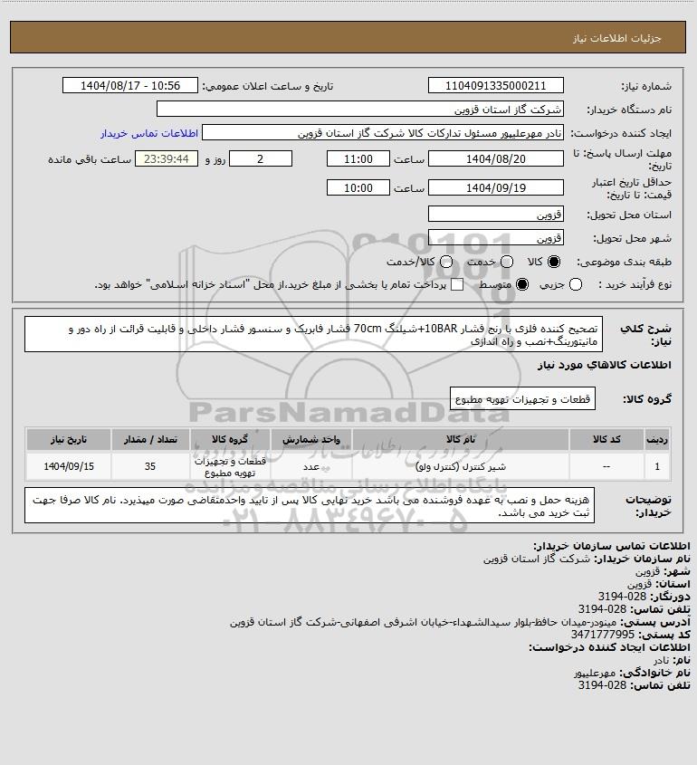 نام سازمان خریدار: شرکت گاز استان قزوین
