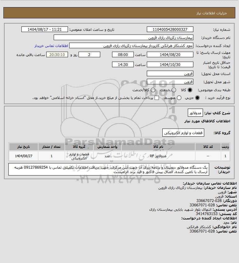 تلفن:5- 88349670 (021) فکس: 88349673 (021) Website: www.ParsNamadData.com E-mail: Info@ParsNamadData.com استعلام مدولاتور