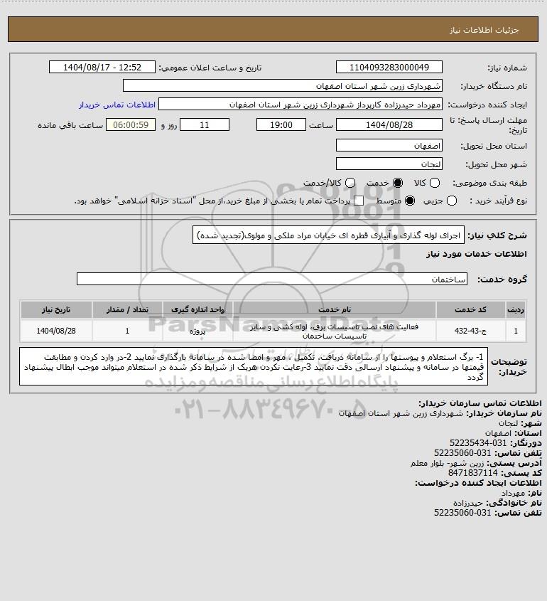 تلفن:5- 88349670 (021) فکس: 88349673 (021) Website: www.ParsNamadData.com E-mail: Info@ParsNamadData.com استعلام اجرای لوله گذاری و آبیاری قطره ای خیابان مراد ملکی و مولوی(تجدید شده)