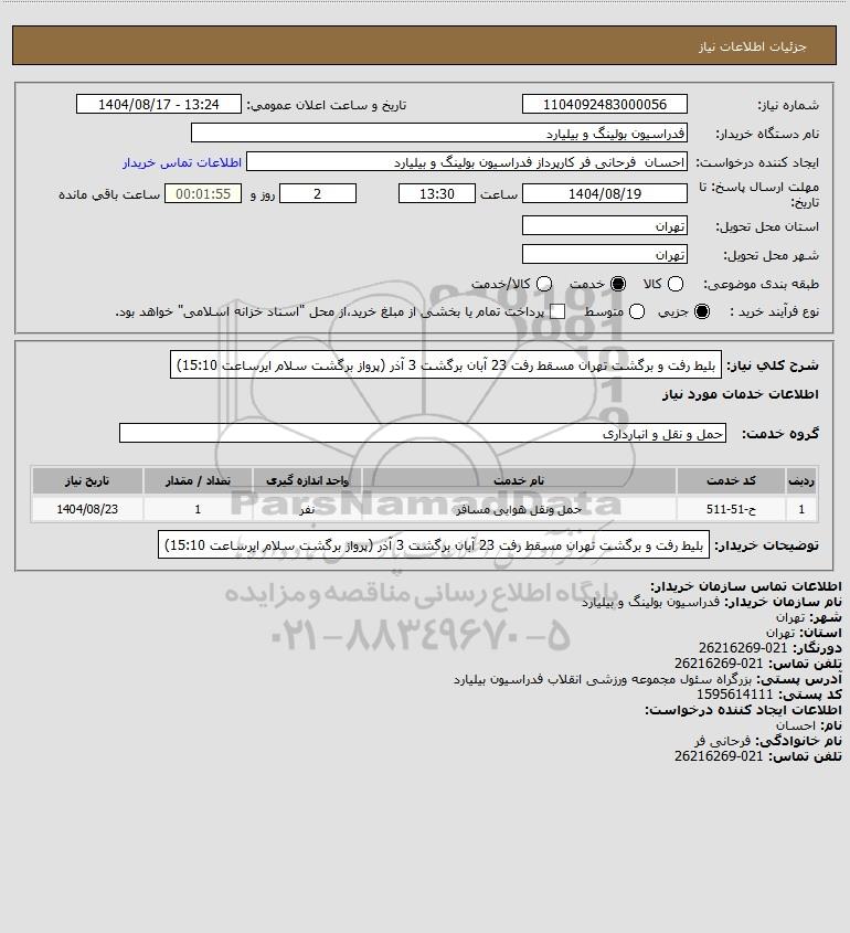 نام سازمان خریدار: فدراسیون بولینگ و بیلیارد