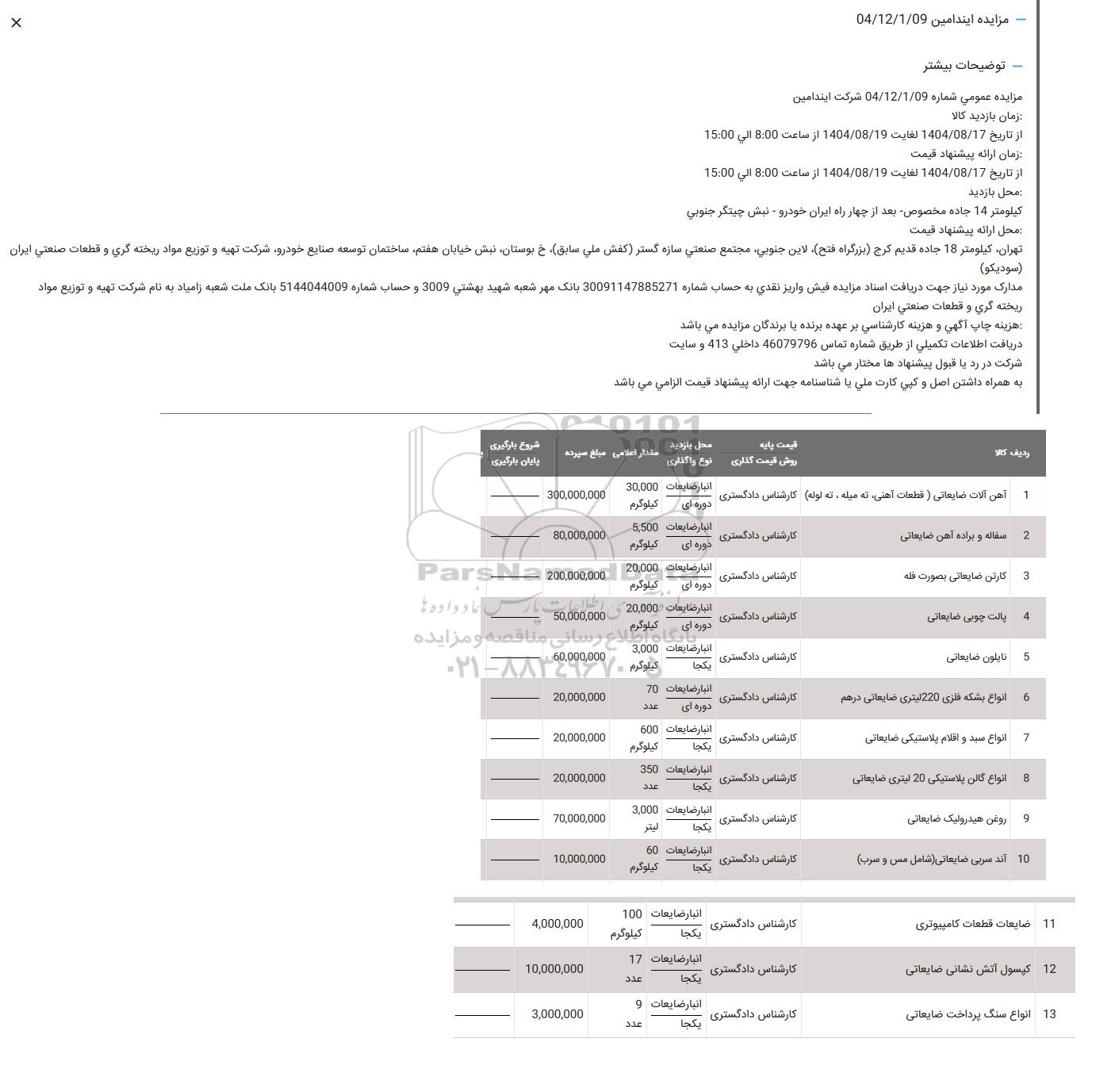 مزایده عمومی شماره 04/12/1/09 شرکت ایندامین