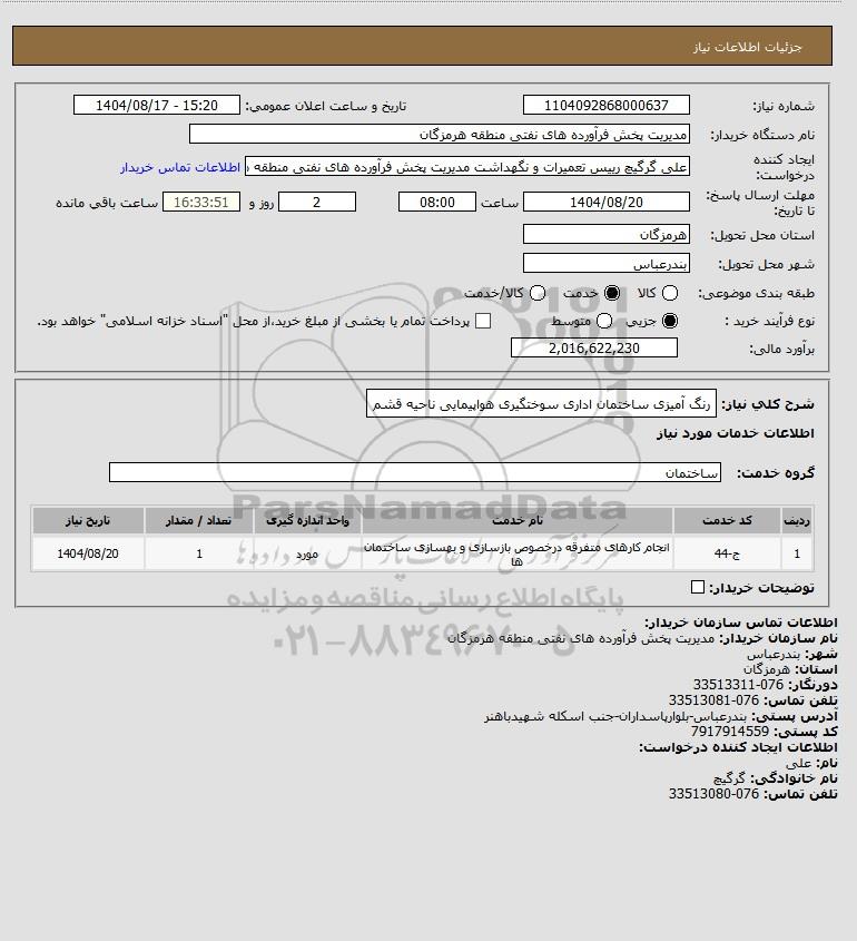 تلفن:5- 88349670 (021) فکس: 88349673 (021) Website: www.ParsNamadData.com E-mail: Info@ParsNamadData.com استعلام رنگ آمیزی ساختمان اداری سوختگیری هواپیمایی ناحیه قشم
