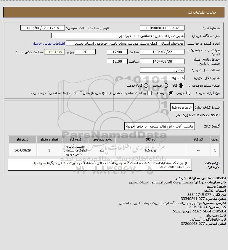 تلفن:5- 88349670 (021) فکس: 88349673 (021) Website: www.ParsNamadData.com E-mail: Info@ParsNamadData.com استعلام خرید پرده هوا