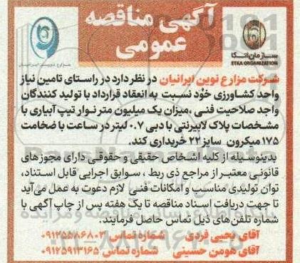 تلفن:5- 88349670 (021) فکس: 88349673 (021) Website: www.ParsNamadData.com E-mail: Info@ParsNamadData.com مناقصه میزان یک میلیون متر نوار تیپ آبیاری ....