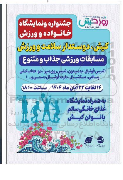 تلفن:5- 88349670 (021) فکس: 88349673 (021) Website: www.ParsNamadData.com E-mail: Info@ParsNamadData.com جشنواره و نمایشگاه خانواده و ورزش