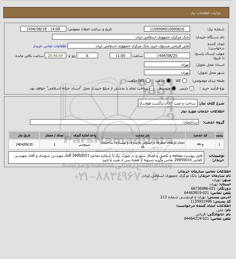 تلفن:5- 88349670 (021) فکس: 88349673 (021) Website: www.ParsNamadData.com E-mail: Info@ParsNamadData.com استعلام ساخت و نصب کانال برگشت هواساز