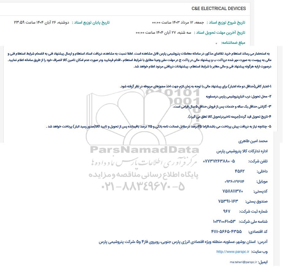 | عنوان آگهی: استعلام C&E ELECTRICAL DEVICES |