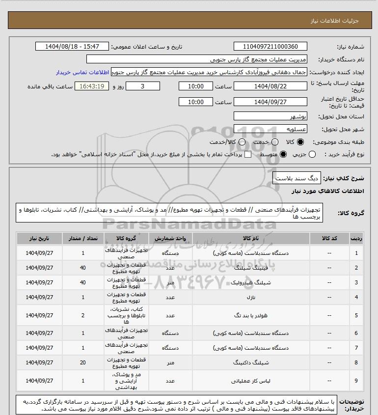 تلفن:5- 88349670 (021) فکس: 88349673 (021) Website: www.ParsNamadData.com E-mail: Info@ParsNamadData.com استعلام دیگ سند بلاست