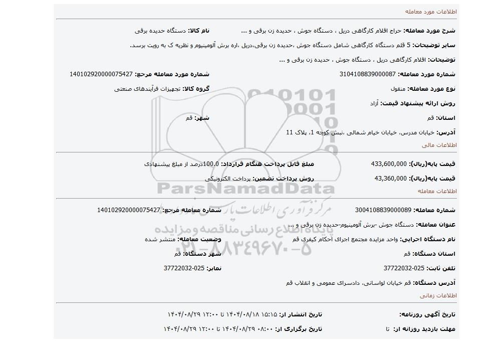 | عنوان آگهی: مزایده اقلام کارگاهی دریل دستگاه جوش حدیده زن برقی و ... |
