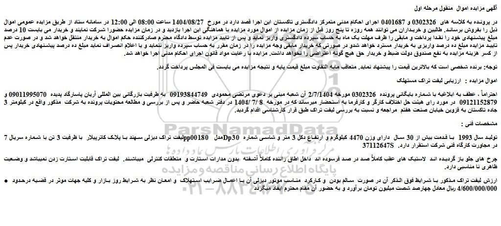 اموال مزایده : ارزیابی لیفت تراک مستهلک