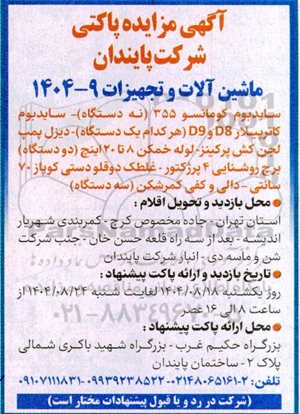 تلفن:5- 88349670 (021) فکس: 88349673 (021) Website: www.ParsNamadData.com E-mail: Info@ParsNamadData.com مزایده فروش ماشین آلات و تجهیزات شامل....