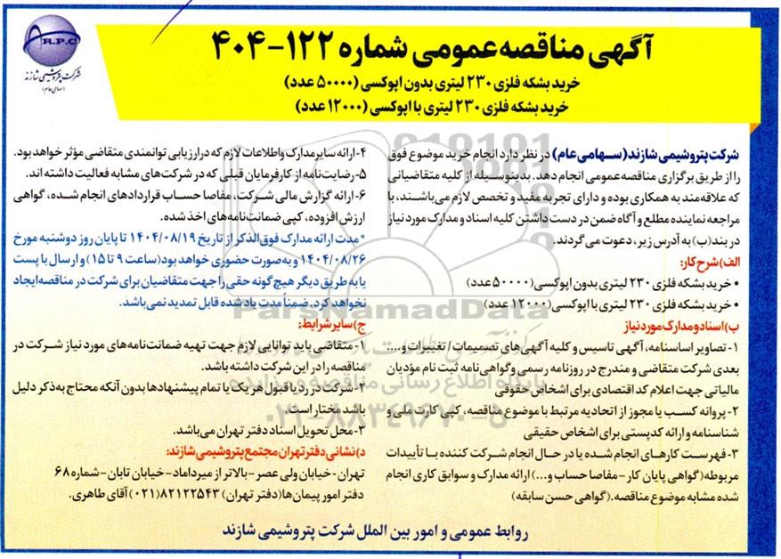 اگهی مناقصه عمومی شماره 122-1404