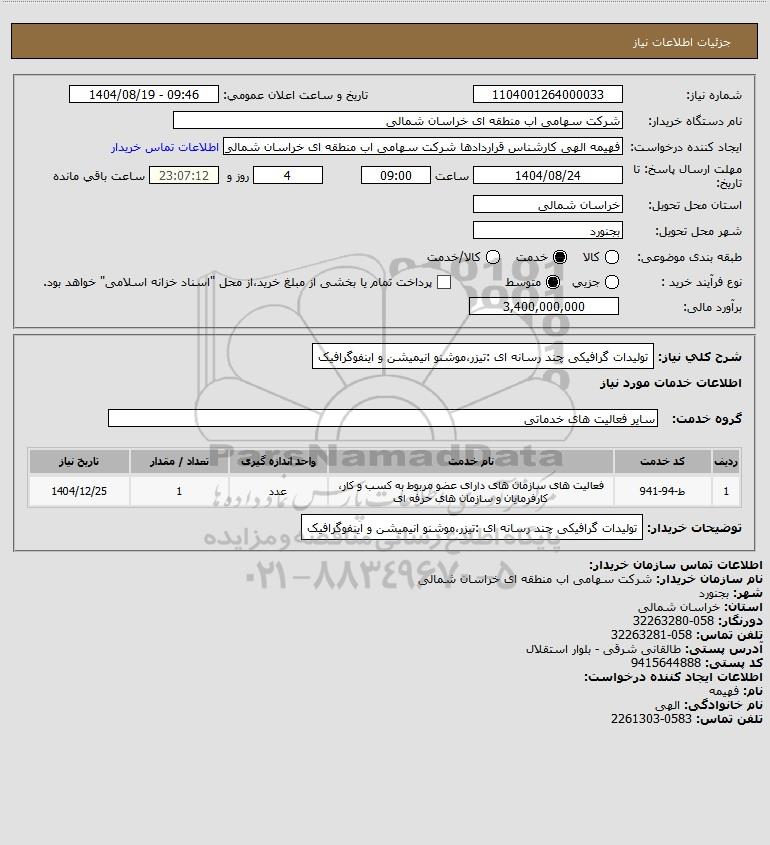 عنوان آگهی: استعلام تولیدات گرافیکی چند رسانه ای :تیزرموشنو انیمیشن و اینفوگرافیک
