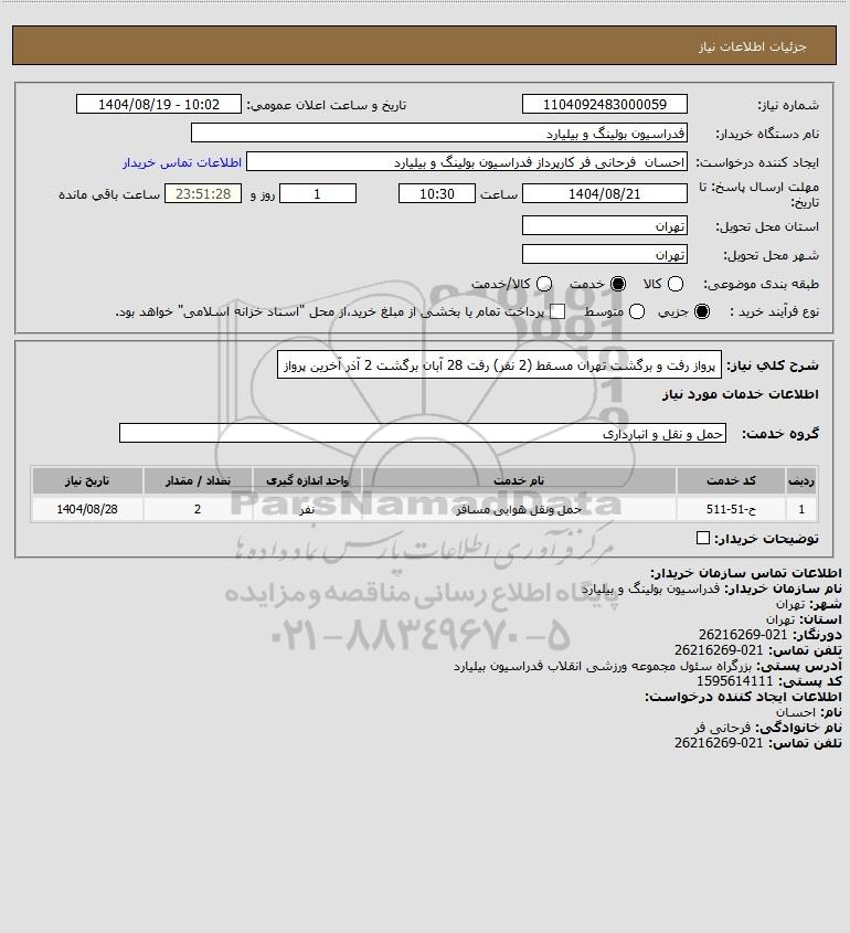 تلفن:5- 88349670 (021) فکس: 88349673 (021) Website: www.ParsNamadData.com E-mail: Info@ParsNamadData.com استعلام پرواز رفت و برگشت تهران مسقط (2 نفر) رفت 28 آبان برگشت 2 آذر آخرین پرواز