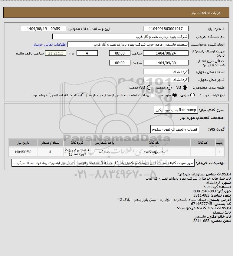 تلفن:5- 88349670 (021) فکس: 88349673 (021) Website: www.ParsNamadData.com E-mail: Info@ParsNamadData.com استعلام fluid pump پمپ نیوماتیکی