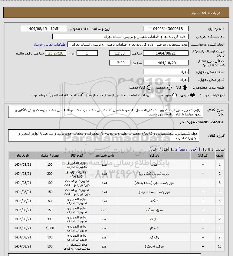 تلفن:5- 88349670 (021) فکس: 88349673 (021) Website: www.ParsNamadData.com E-mail: Info@ParsNamadData.com استعلام لوازم التحریر طبق لیست پیوست