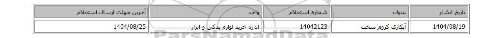 تلفن:5- 88349670 (021) فکس: 88349673 (021) Website: www.ParsNamadData.com E-mail: Info@ParsNamadData.com استعلام آبکاری کروم سخت