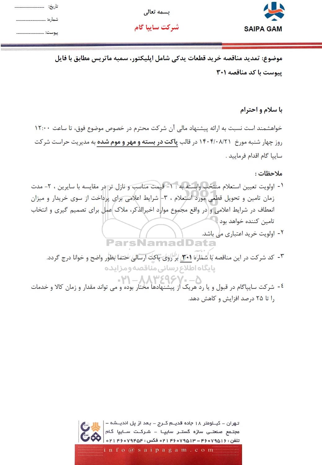 تلفن:5- 88349670 (021) فکس: 88349673 (021) Website: www.ParsNamadData.com E-mail: Info@ParsNamadData.com تمدید مناقصه خرید قطعات یدکی شامل اپلیکتور، سمبه ماتریس