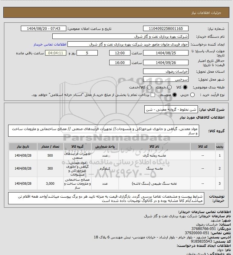 تلفن:5- 88349670 (021) فکس: 88349673 (021) Website: www.ParsNamadData.com E-mail: Info@ParsNamadData.com استعلام شن نخلوط - گروایه معدنی - شن
