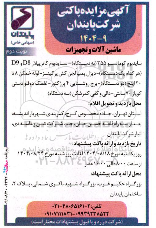 تلفن:5- 88349670 (021) فکس: 88349673 (021) Website: www.ParsNamadData.com E-mail: Info@ParsNamadData.com مزایده فروش ماشین آلات و تجهیزات شامل.... - نوبت دوم